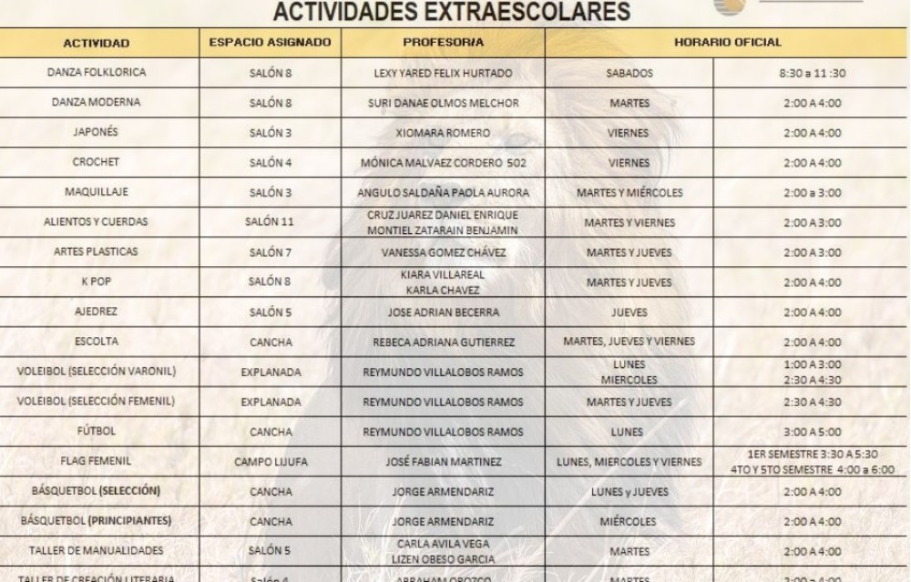 HORARIOS DE ACTIVIDADES EXTRAESCOLARES