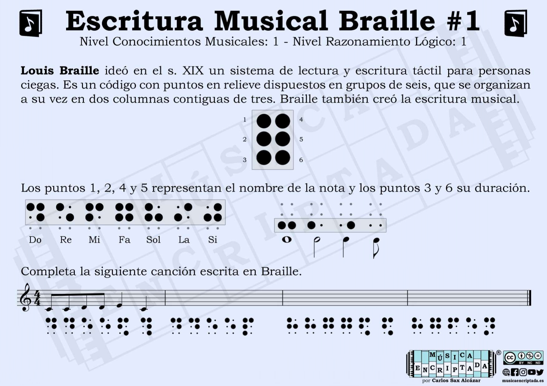4. Ejemplo de escritura musical en Braille recuperada del blog Música Encriptada