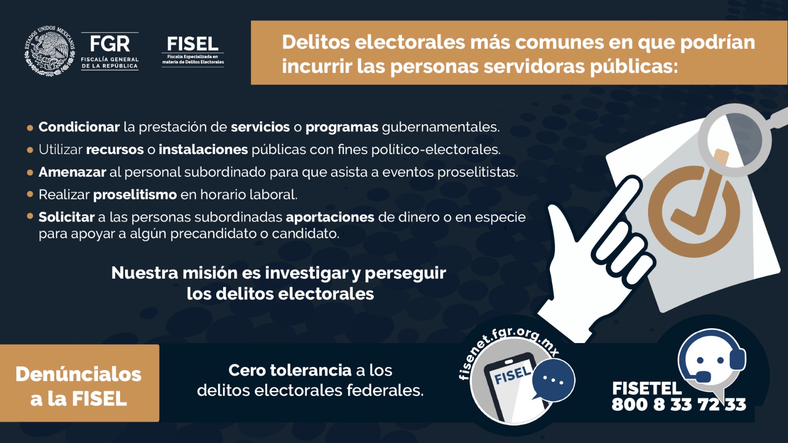 “Cero tolerancia a los delitos electorales federales #DenuncialosEnLaFISEL”