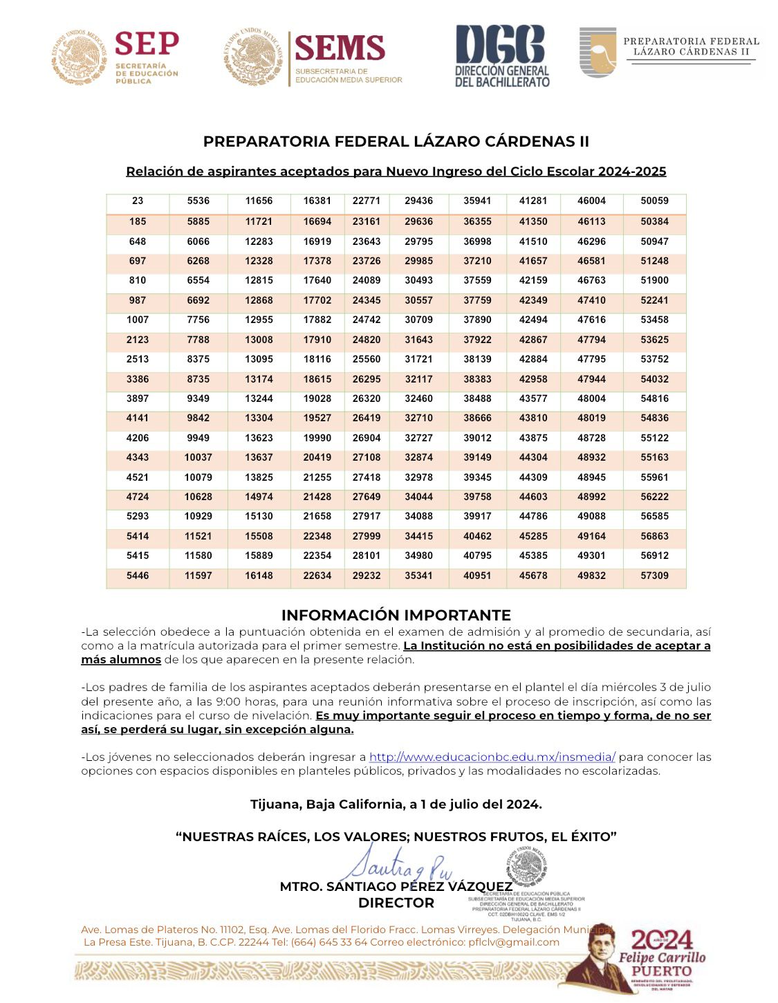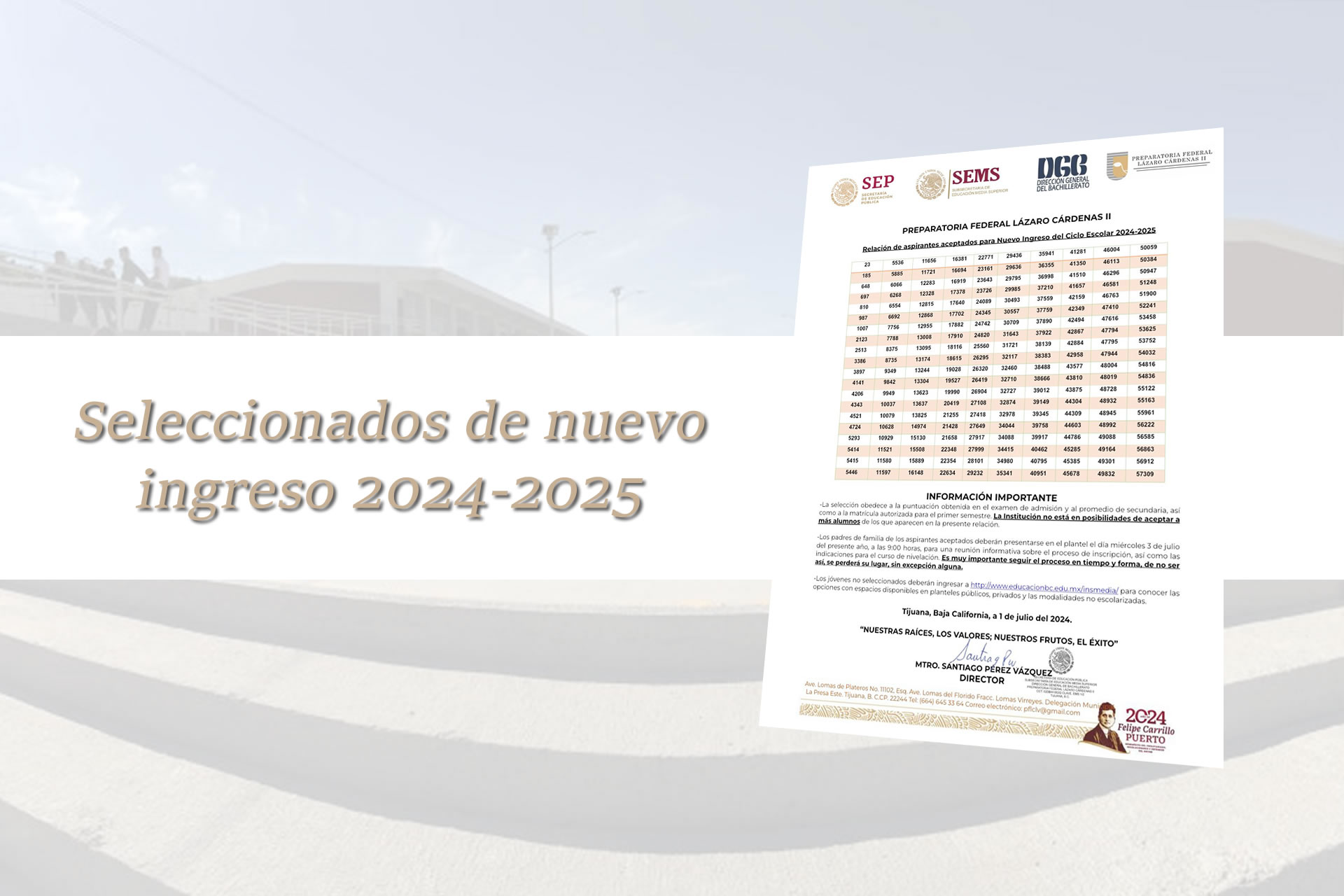 Relación de Alumnos de nuevo ingreso Seleccionados para el ciclo escolar 2024-2025