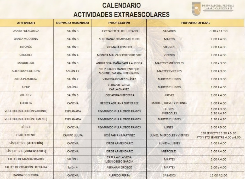 LES COMPARTIMOS ELHORARIO DE ACTIVIDADES EXTRAESCOLARES